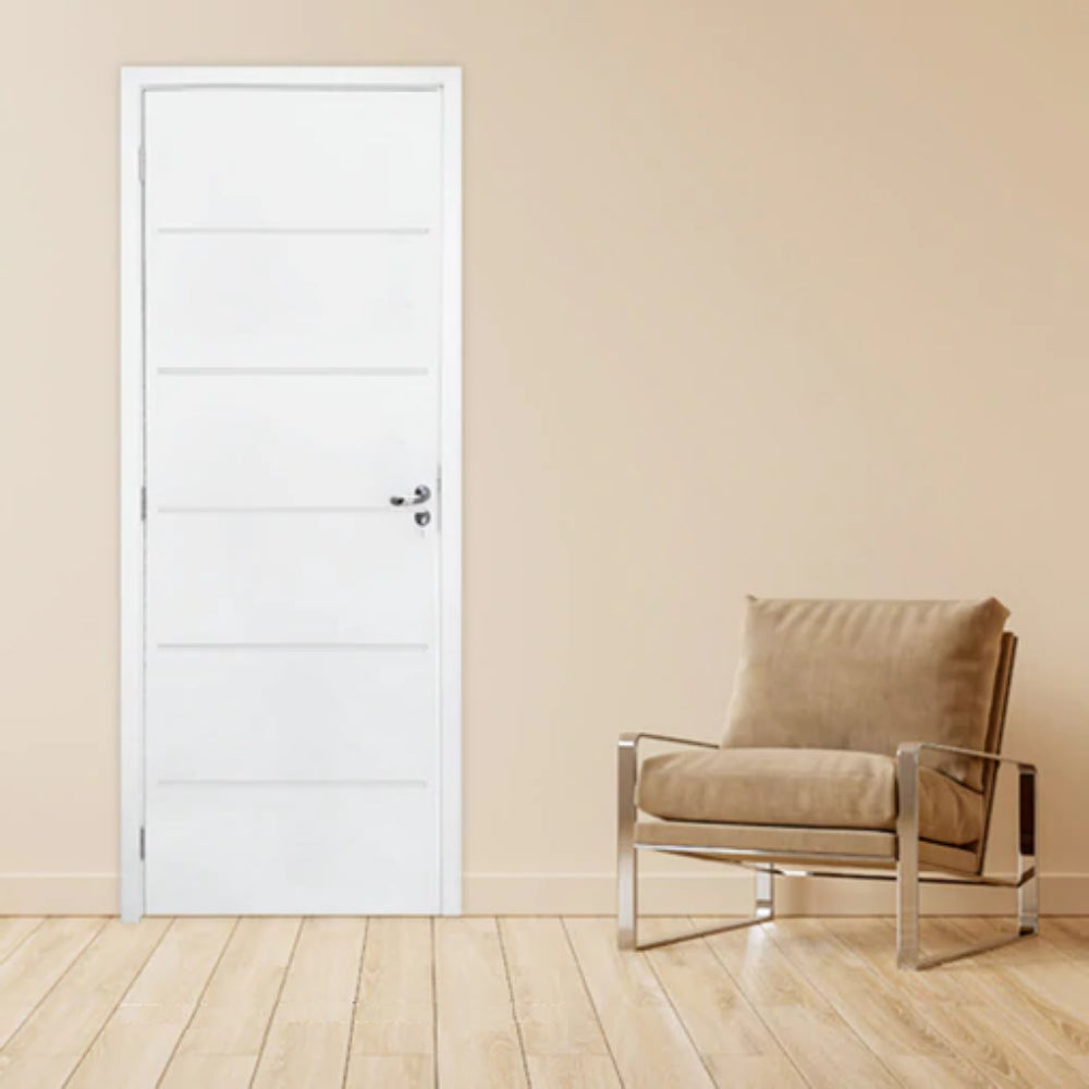 O Kit Porta Pronta Primer Branco para construtora da Germano é certificado dentro das normas ABNT NBR15930, que garante qualidade de produto. O kit porta pronta primer Germano é entregue montado, travado, pronto para instalação. A folha de porta primer possui fundo branco feito com pintura de rolo e secagem UV, que facilita o trabalho de pintura final na obra, possuindo o modelo liso e frisado. Por conta do sistema de regulagem do batente + guarnição(alisar), o kit porta pronta primer da Germano atende a paredes com espessura de 7,5cm até 22cm. Tanto batente quanto guarnição(alisar) também tem fundo branco, e são feitos com pintura à base d'água. Fechadura e dobradiça podem ser as de padrão da Germano ou por compra direta feito pelo cliente.